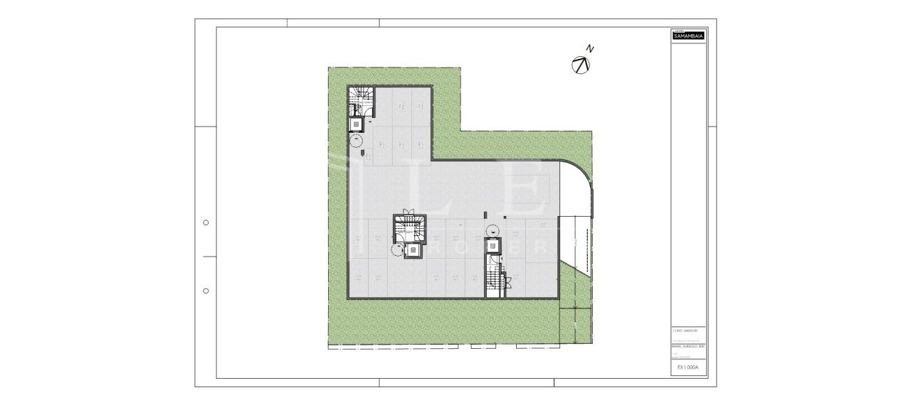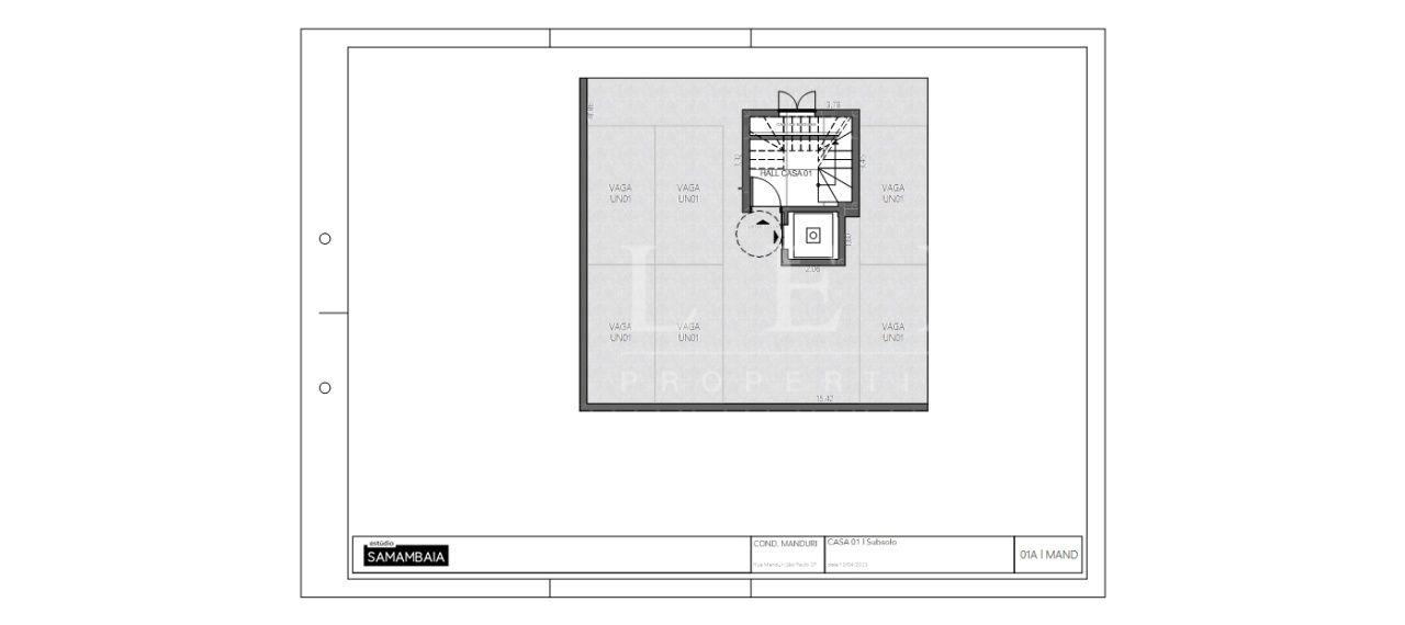 Subsolo: 06 vagas de garagem, hall de entrada com escada e elevador privativo.