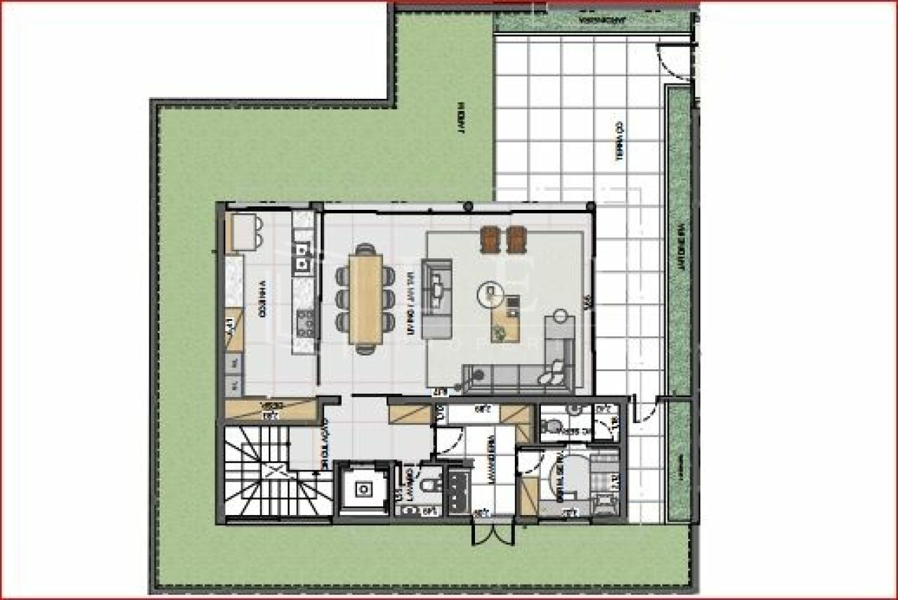 Térreo: living para 02 ambientes aberto para o jardim, cozinha americana (podendo ser fechada), quarto e banheiro de serviço, lavanderia, lavabo e hall de entrada social com elevador privativo.