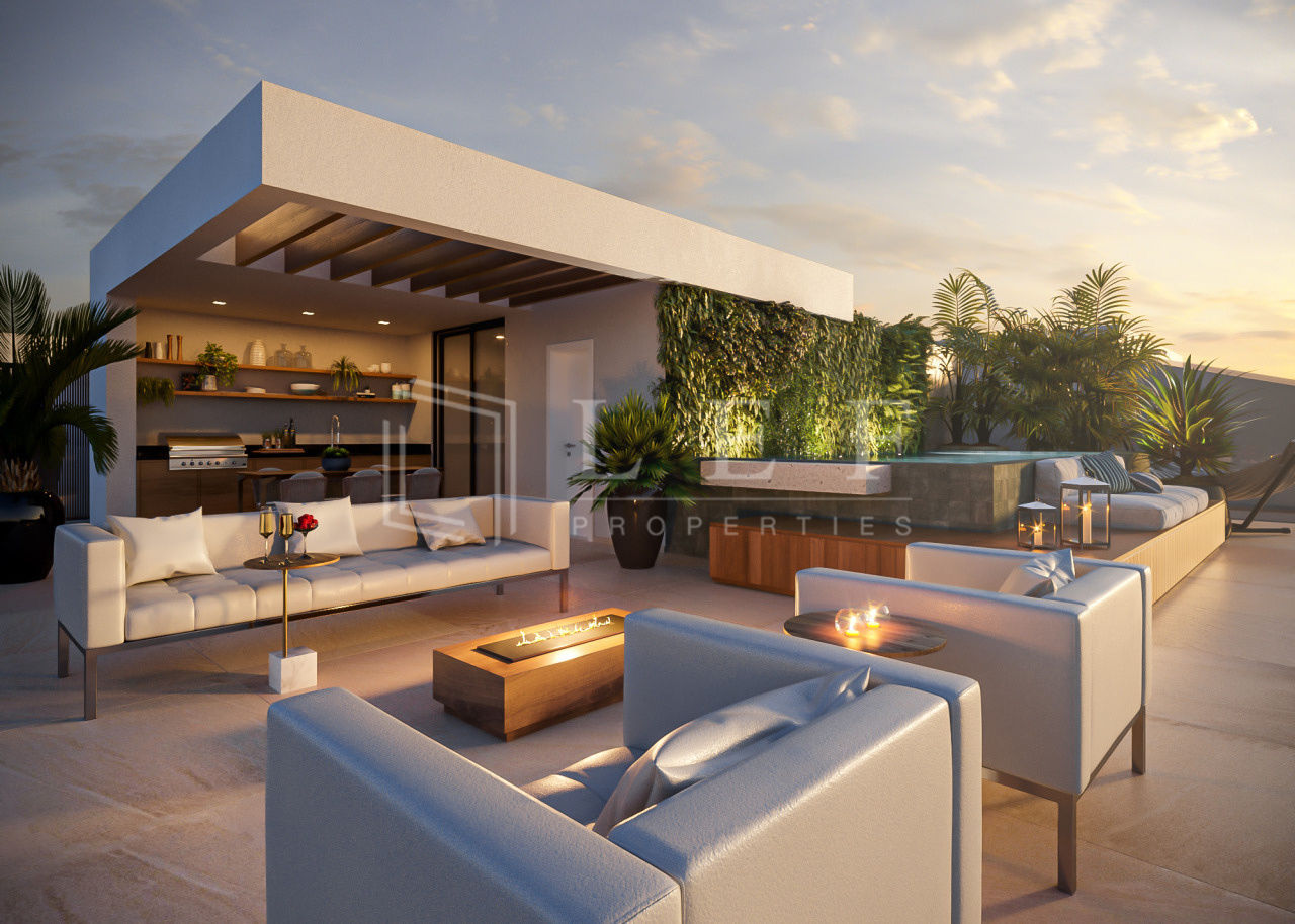 Cobertura : área gourmet coberta , lavabo , terraço com piscina privativa , elevador e vista maravilhosa para o bairro .